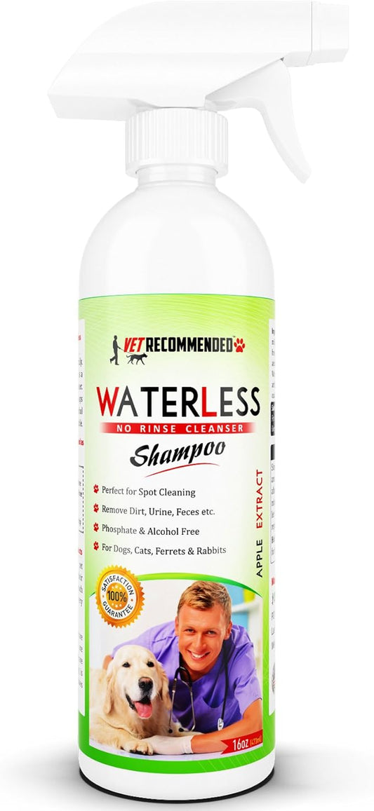 Waterless Dog Shampoo No Rinse Dry Shampoo for Dogs (16oz), Detergent and Alcohol Free, Apple Extract - Perfect for Spot Cleaning The Dog Coat - Made in USA