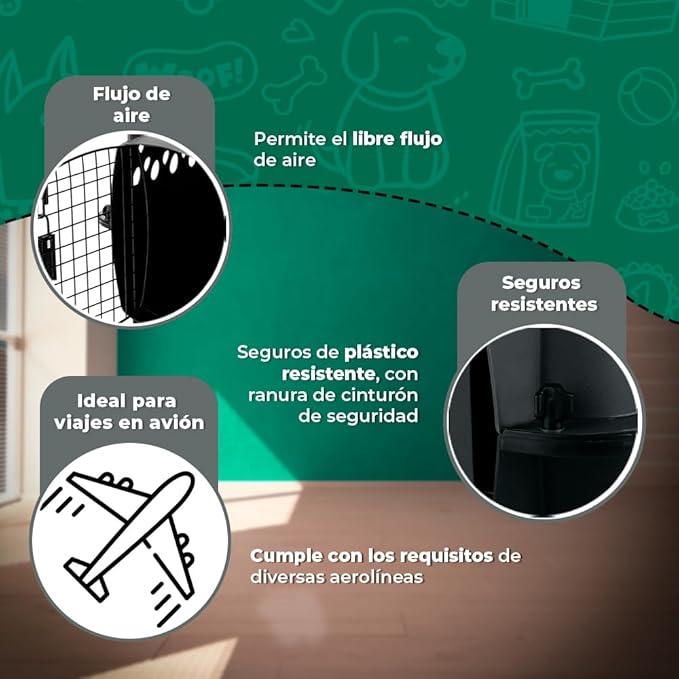 - Airline Friendly Dog Carrier: This pet carrier meets most airline cargo specifications. This travel dog crate also has ventilation on 4 sides. Includes built in storage for additional pet identification