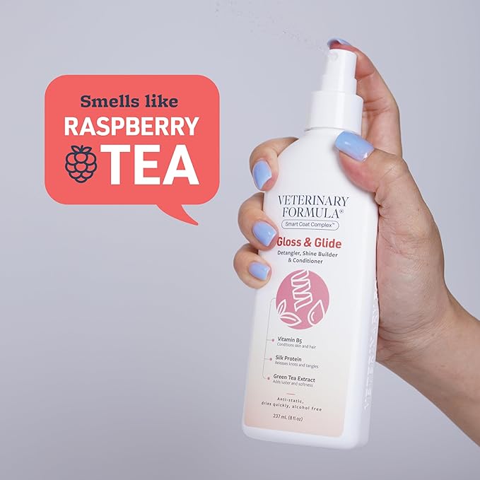 Veterinary Formula Smart Coat Complex Gloss & Glide Detangler, 8 Fl oz – Shine Builder, Conditioner Spray for Dogs – Quickly Detangles Matted Hair – with Silk Protein and Antioxidants