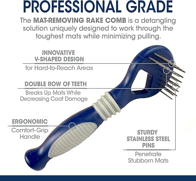 - ERGONOMIC DESIGN - Dog combing rake features an easy-hold handle for comfort and control