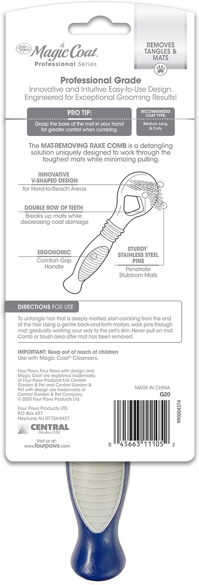 - V-SHAPED DESIGN - Rake comb for dogs created to demat hard-to-reach areas