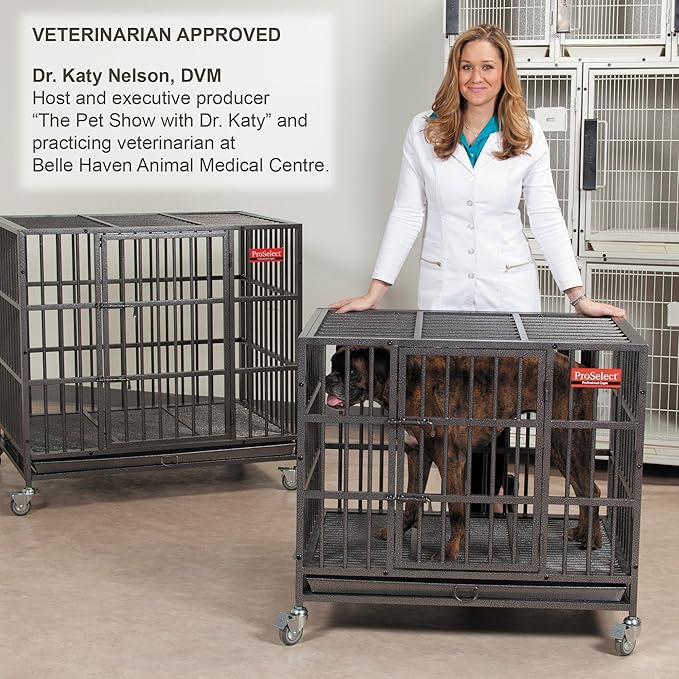 - 20-Gauge Steel Cage – This ProSelect Empire dog cage is extremely strong with reinforced 0.5-inch diameter steel tubes and 20-gauge steel