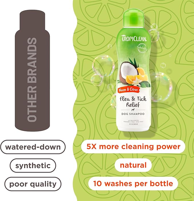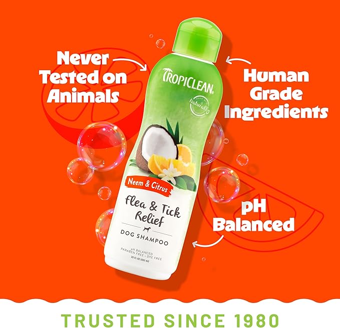 TropiClean Citrus Flea & Tick Shampoo for Dogs, Soothing Bite Relief, Fresh Citrus Scent, Made in the USA, 20oz.