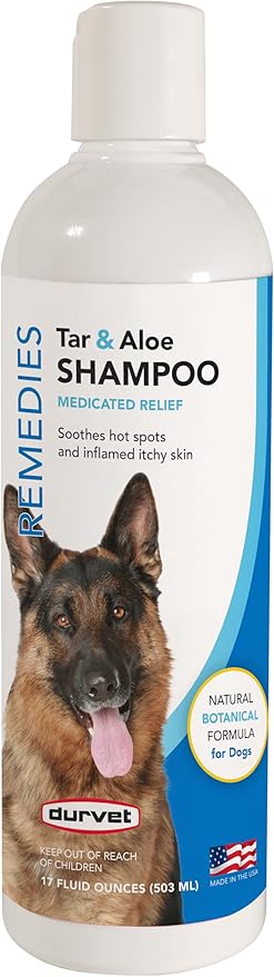 - Medicated. Solubilized coal tar and natural aloe vera soothe itchy; inflamed skin due to hot spots; seborrhea and non-specific dermatitis