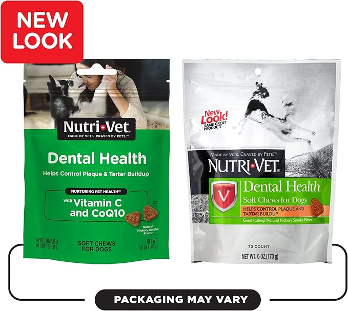 Nutri-Vet Dental Health Soft Chews for Dogs - Helps Control Plaque and Tartar Buildup - Natural Hickory Smoke Flavor - 70 Count - 6 oz