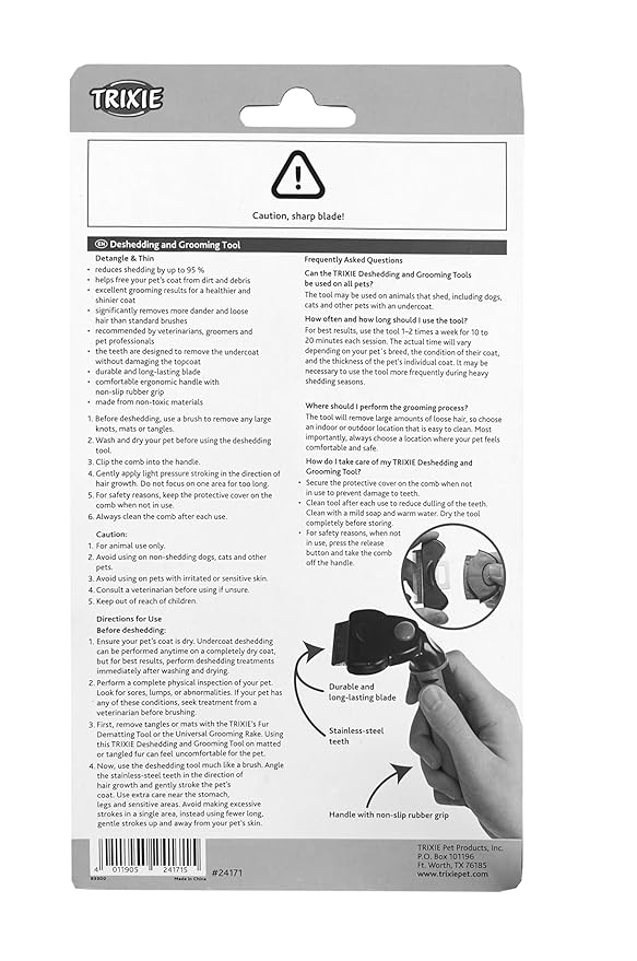 TRIXIE Pet Deshedding and Grooming Tool for Cats and Small Dogs, 2.75" x 5.5" (7x15cm)