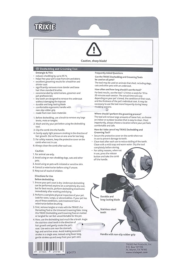 TRIXIE Pet Deshedding and Grooming Tool, Small and Medium Dogs, 3" x 6" (8x14cm)