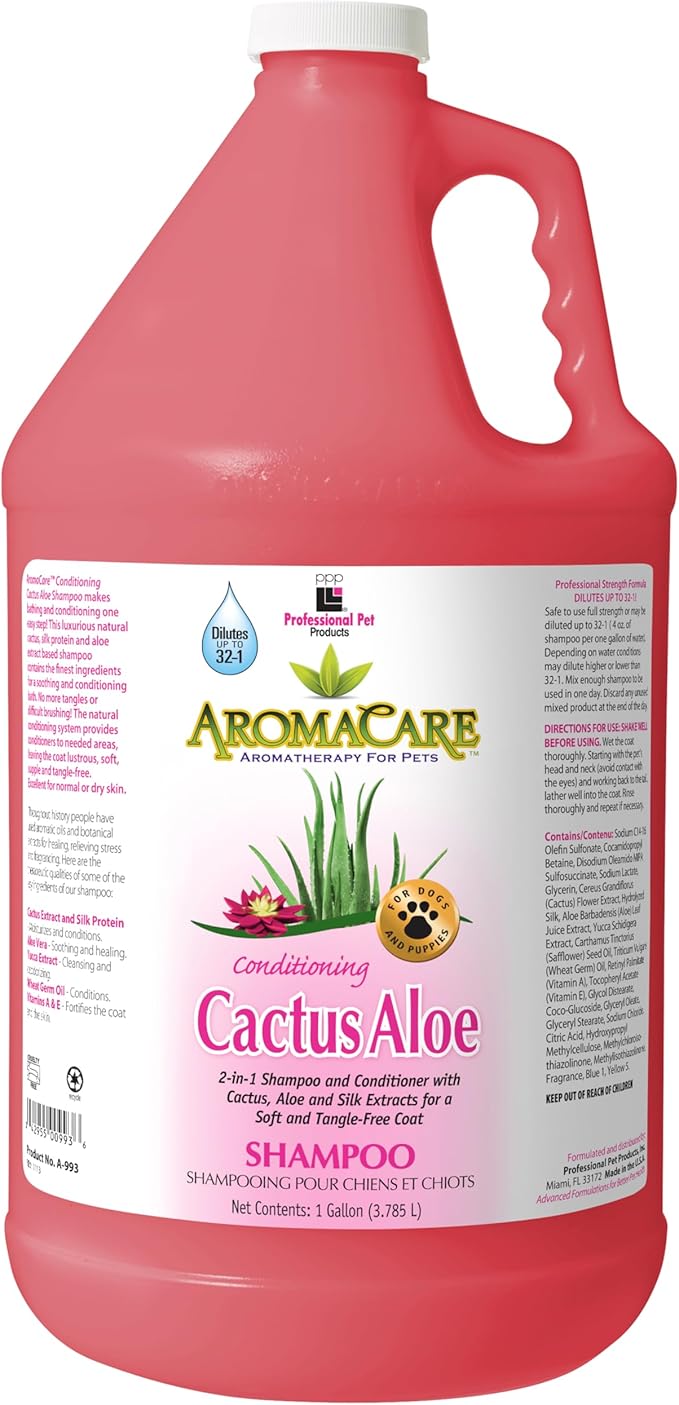 PPP AromaCare Conditioning Cactus Shampoo for Dogs - Luxurious Aloe Soothes and Nourishes Skin, Fur & Coat - No More Dry, Tangled Fur - 1 Gallon