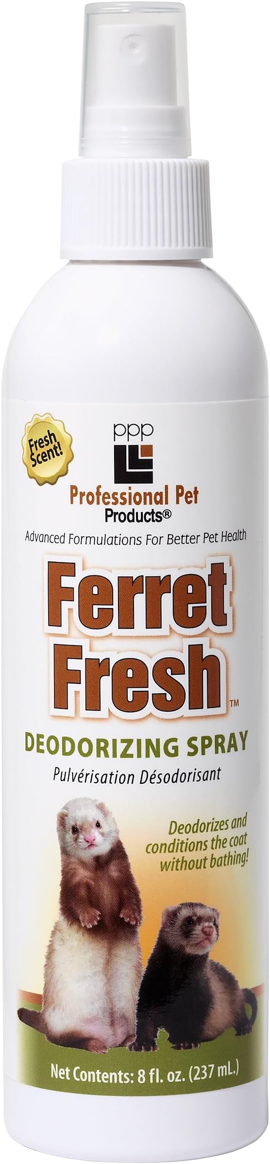 PPP Ferret Fresh Deodorizing Spray for Ferrets - Removes Foul Odors and Rejuvenates Fur & Coat - Piña Colada Scent - 8 fl oz