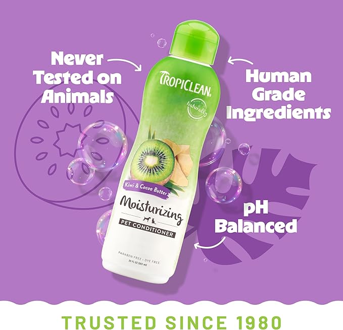 TropiClean Dog Conditioner, Easy Detangling & Moisturizing Conditioner, Puppy Safe, Made in The USA, Kiwi & Cocoa Butter Scent, 20oz.