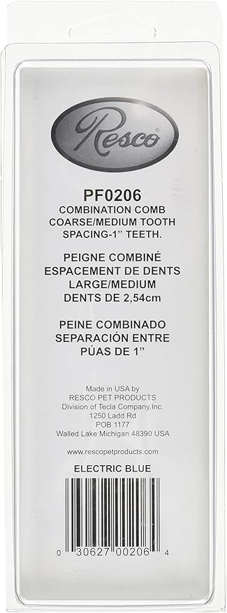 Resco US-Made Combination Comb for Dogs and Cats, Blue