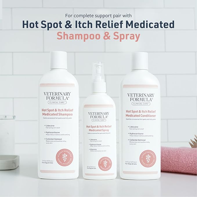 - COMPLETE ROUTINE – For dogs and cats over 12 weeks, pair our Hot Spot & Itch Relief Medicated Dog Shampoo and Conditioner together to promote optimal skin health and complete bath time.