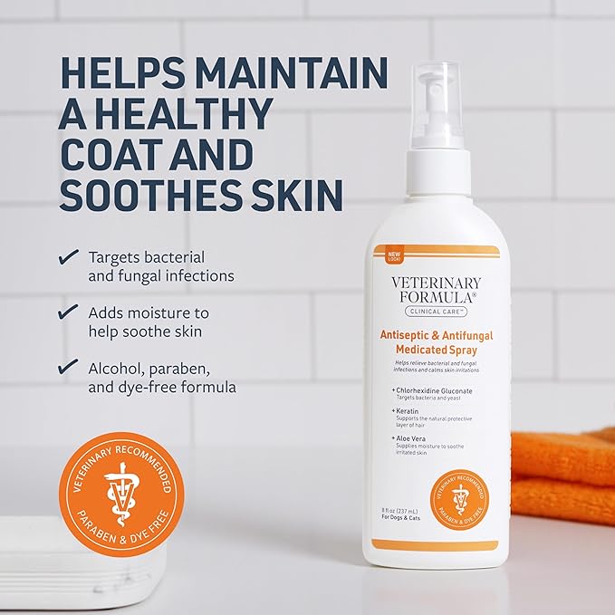 Veterinary Formula Clinical Care Antiseptic and Antifungal Medicated Spray for Dogs & Cats, 8 Fl Oz (1 Pack)