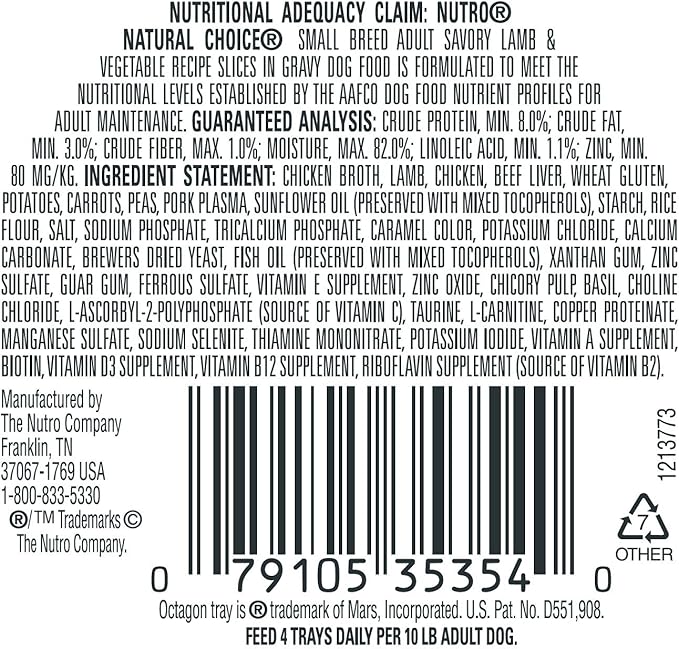 Nutro Natural Choice Small Breed Adult Savory Lamb And Vegetable Slices In Gravy Tray - 3.5 Oz. (100 G)