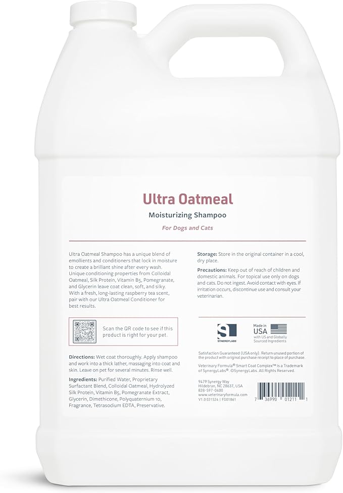 Veterinary Formula Smart Coat Complex Ultra Oatmeal Moisturizing Shampoo for Dogs, 128 Fl oz / 1 Gallon – Moisture-Rich, Nourishing – Leaves Coat Clean, Soft, Silky, Shiny – Long-Lasting Fragrance