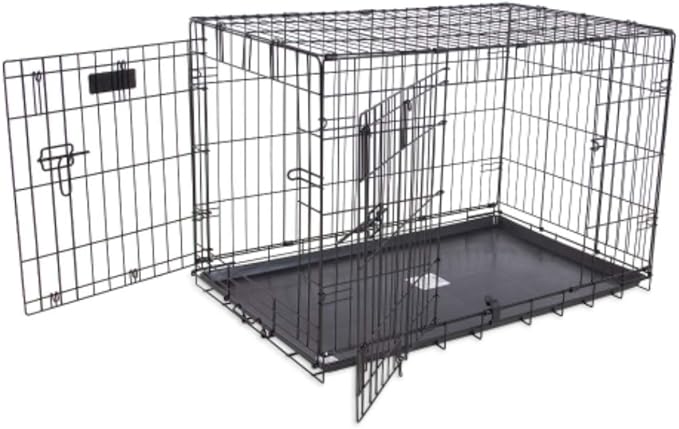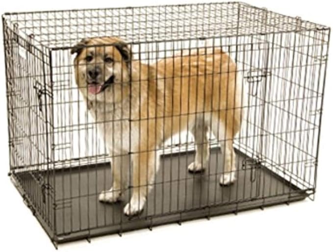 - Reliable, Standard Duty Wire Constuction: this dog crate for large dogs has a 5-point locking system that eliminates gaps & 2 doors for maximum security and access. Rust-resistant finish makes it suitable for occasional outdoor use