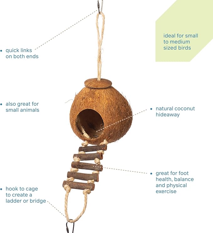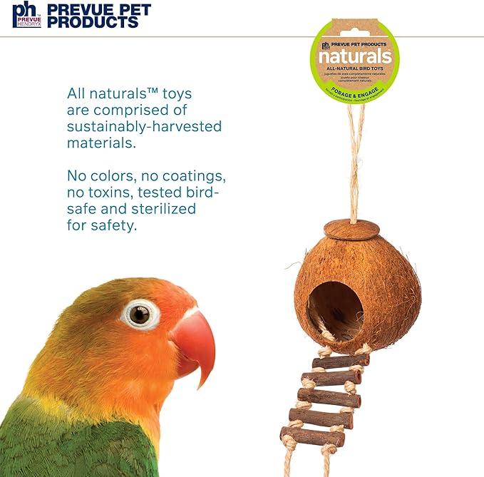 Prevue Hendryx Prevue Pet Products 62801 Naturals Coco Hideaway with Ladder Bird Toy,1 Count (Pack of 1)