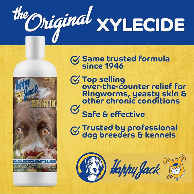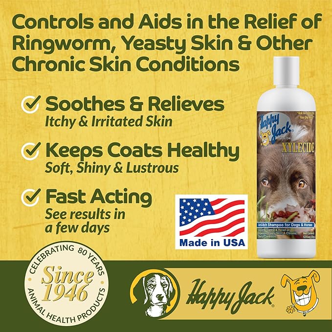 Happy Jack Xylecide, Itch Relief Shampoo for Dogs, Control Ringworms, Itchy Skin Treatment for Hot Spots, Seborrheic Dermatitis, Dandruff, Psoriasis, Eczema, Kennel Itch (12 oz)
