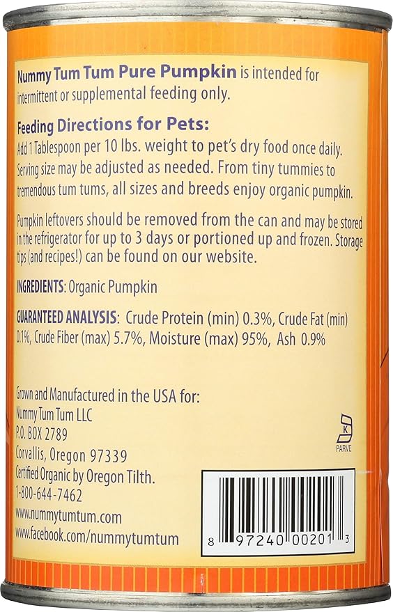 - Nummy Tum Tum Organic Pure Pumpkin 12/15 oz.