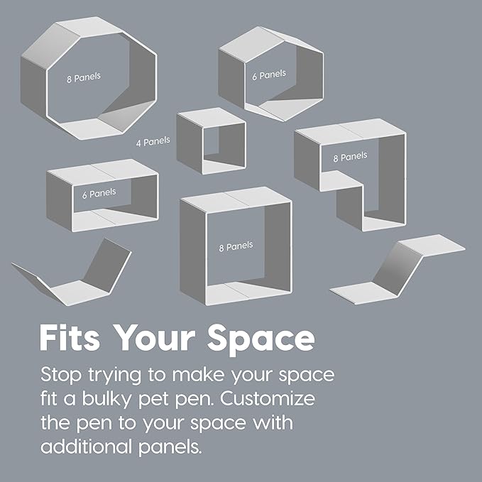 - DURABLE- This playpen is made with durable, heavy-duty molded plastic and ready for playtime both indoors and out. The material is easy to clean and additional panels can be ordered so the playpen can expand to grow with your pet and give them more room