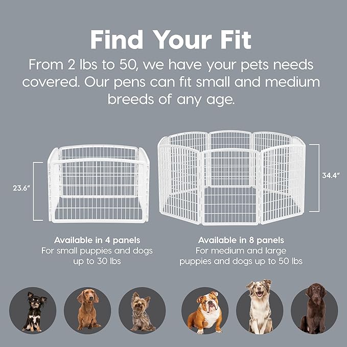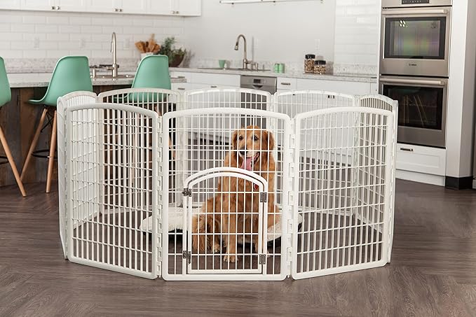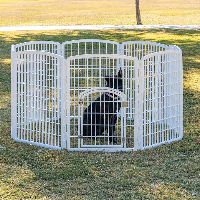 IRIS USA Dog Playpen, 8-Panel 34" Pet Playpen with Door, Puppy Playpen, Indoor/Outdoor Dog Pen, 63 x 63 x 34, Foldable, Customizable, White