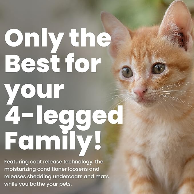 - Coat Release Technology: Featuring coat release technology, the cat, horse, and dog conditioner loosens and releases shedding undercoats and mats during showers. It also minimizes pulling and coat damage to give your pet the best bathing experience.