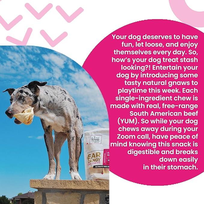 I and love and you Ear Candy Cow Ear Chews - Beef - Rawhide Alternative, Single Ingredient, Free Range Grass Fed Beef, 5ct