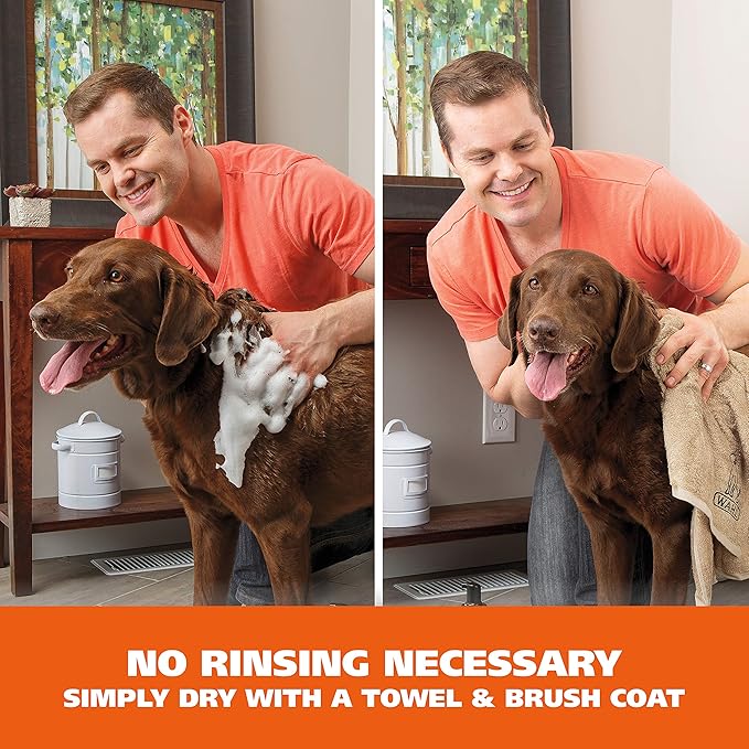 - No Rinsing Necessary – For dogs, cats, horses, or other animals that don’t like wet shampoos; no rinsing necessary, simply dry with a towel and brush coat