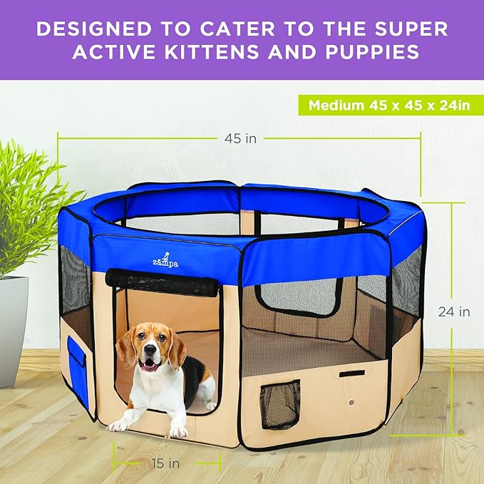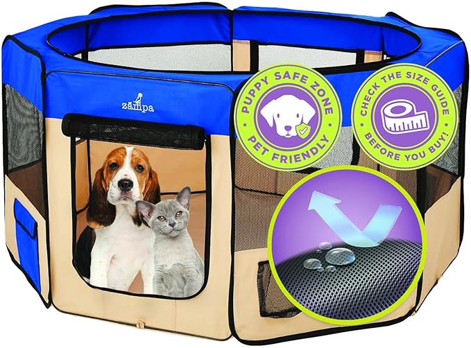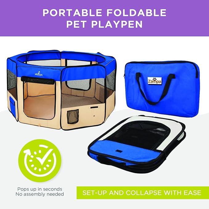 Zampa Dog Playpen Medium 45"x45"x24" Pop Up Portable Playpen for Dogs and Cat, Foldable | Indoor/Outdoor Pen & Travel Pet Carrier + Carrying Case.