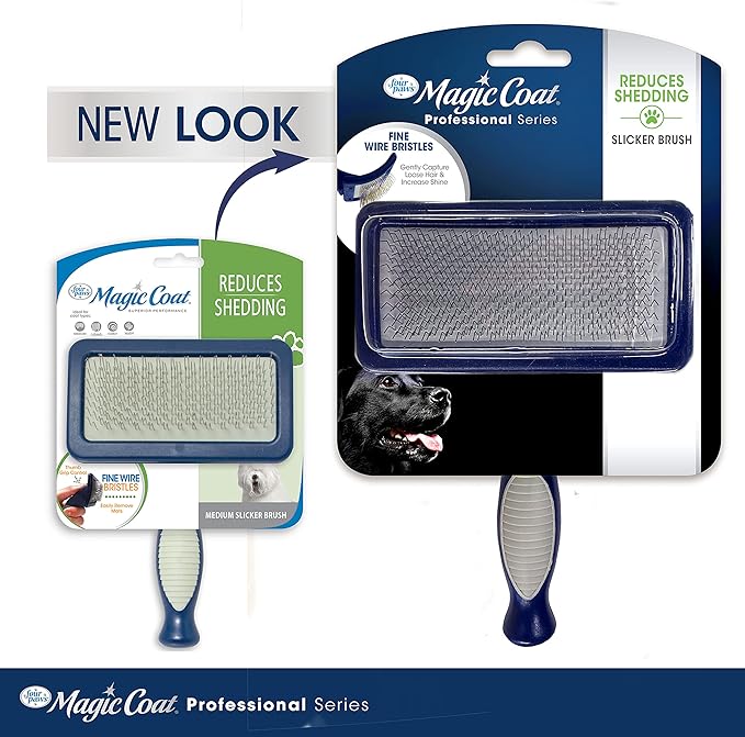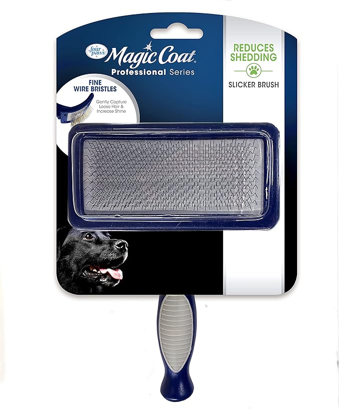 Four Paws Magic Coat Professional Series Grooming Brush for Dogs & Cats, Reduces Shedding, Stimulates Coat's Natural Oils, Ergonomic Design, Ideal for Medium, Long, Curly, and Wiry Coats