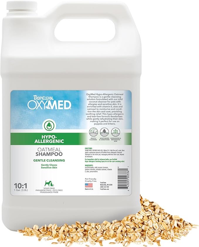 TropiClean OxyMed Hypoallergenic Dog Shampoo for Allergies and Itching, Skin Soothing Shampoo for Pets with Sensitive Skin, Tearless, Cat Safe, 1 Gallon