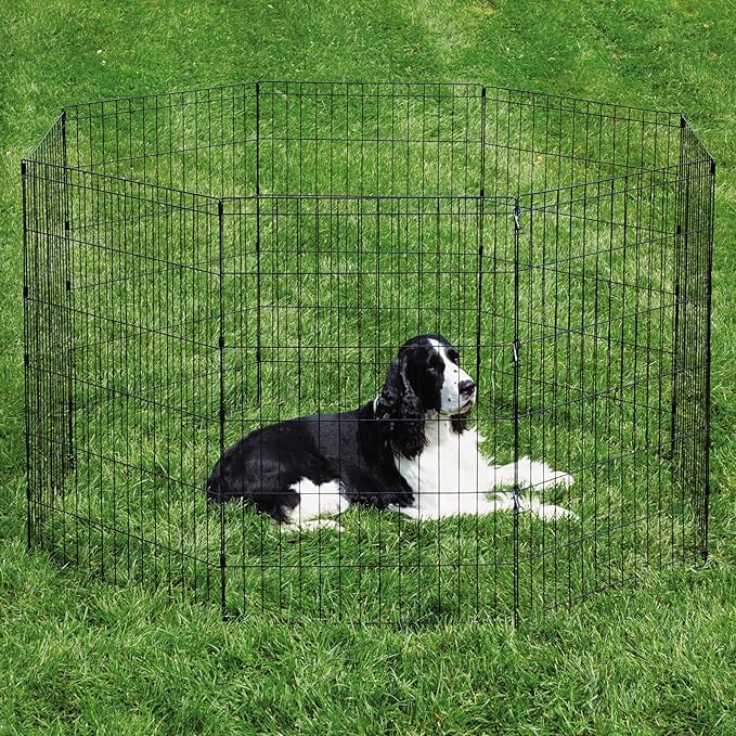 - Durable Design – Constructed from durable metal, this indoor and outdoor pet pen features narrow wire spacing to provide extra rigidity and security