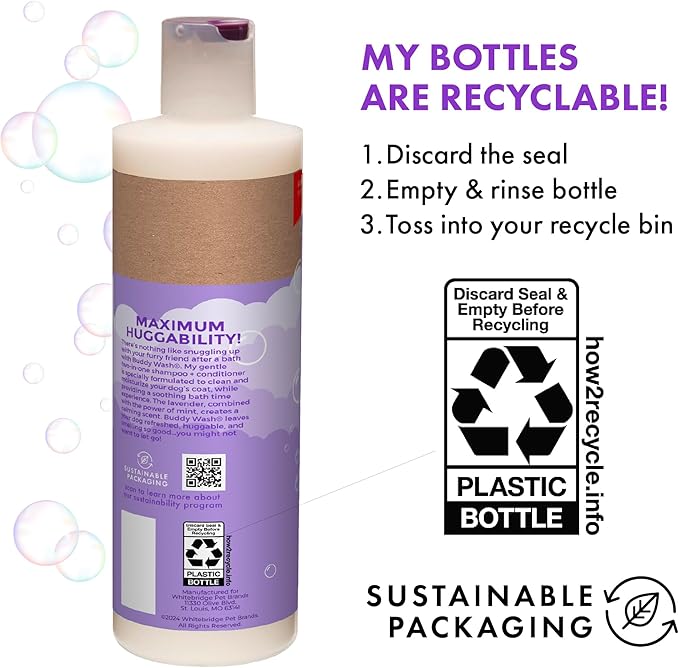 Buddy Grooming Wash 2 in 1 Dog Shampoo, Lavender & Mint, 16 oz. Bottle