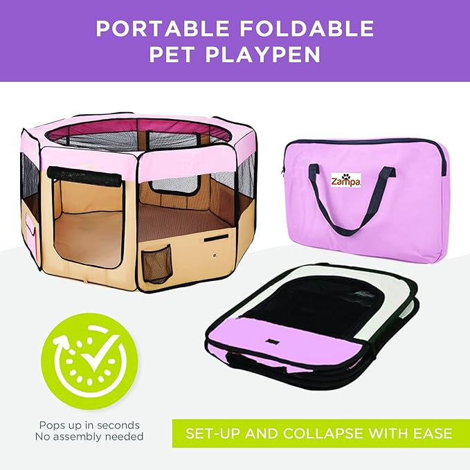 Zampa Dog Playpen Medium 45"x45"x24" Pop Up Portable Playpen for Dogs and Cat, Foldable | Indoor/Outdoor Pen & Travel Pet Carrier + Carrying Case.