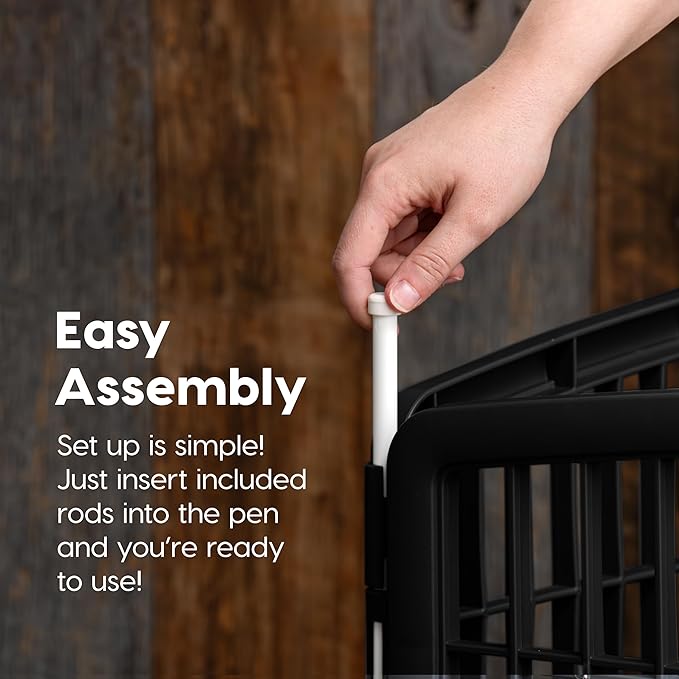 - EASY ASSEMBLY- The pet playpen can be put together easily with the full length connecting rods. It comes with 8 panels, each panel featuring rubber feet to protect flooring and keep the pet pen in place.