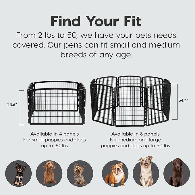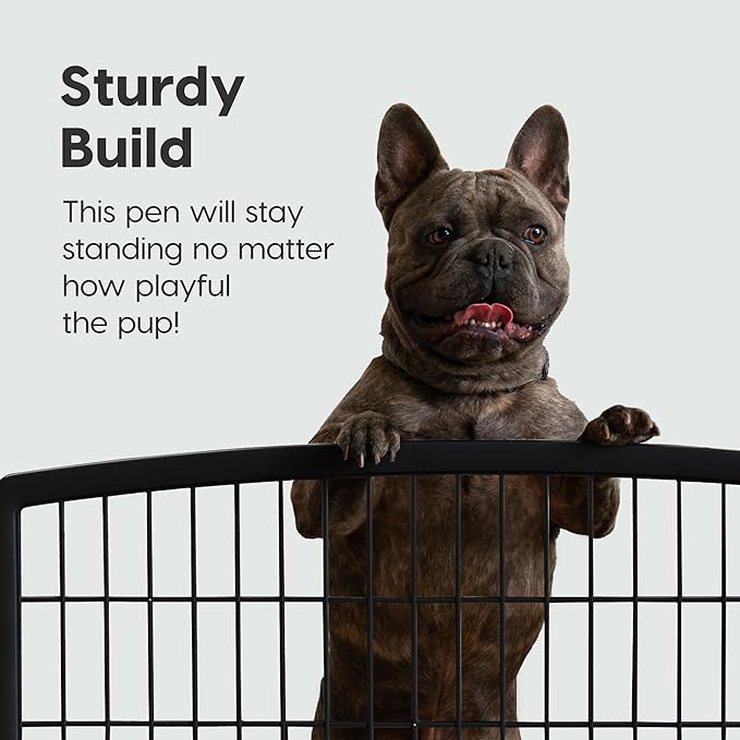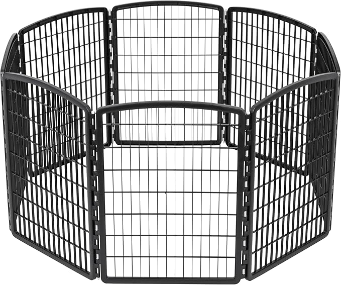 IRIS USA Dog Playpen, 8-Panel 34" Pet Playpen, Puppy Playpen, Indoor/Outdoor Dog Pen, 63 x 63 x 34, Foldable, Customizable, Black
