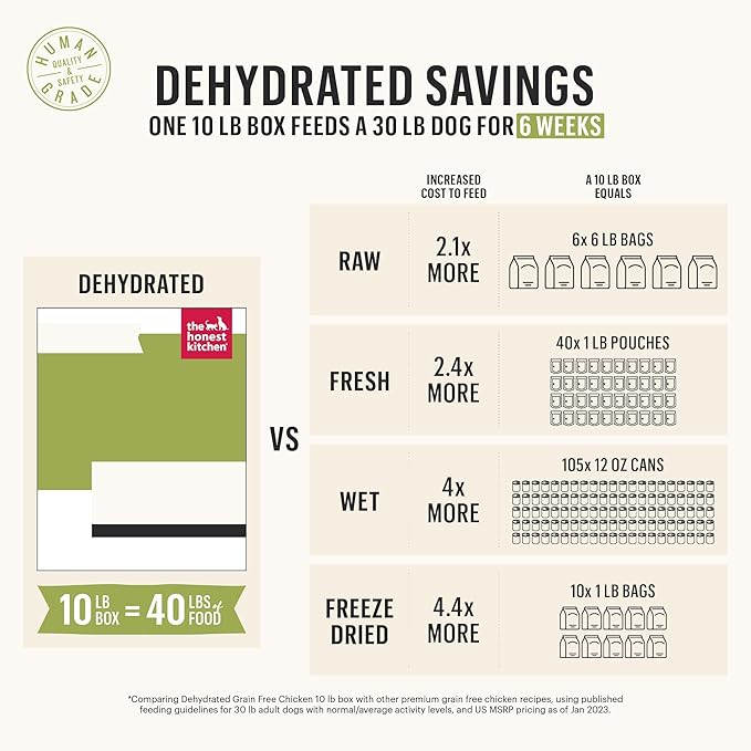 - MAKES 16 LBS OF FOOD: Just add warm water for a wholesome & delicious meal that rehydrates to 4x its weight. A 4 LB box makes 16 LBs of fresh food! Serve alone as a complete easy homemade meal, or use as a topper to dry food.