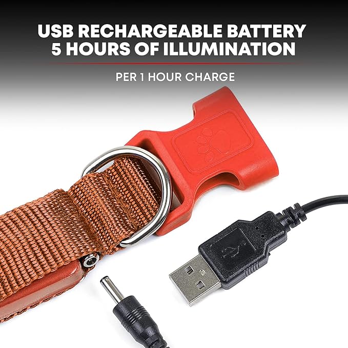 ILLUMISEEN LED Dog Collar USB Rechargeable - Bright & High Visibility Lighted Glow Collar for Pet Night Walking - Weatherproof, in 6 Colors & 6 Sizes (Red Small)