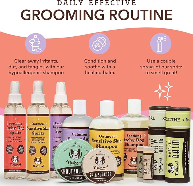 - COMPLETE GROOMING SOLUTION: Enhance your dog’s grooming routine with our Itchy Dog Shampoo and complement it with our Itchy Dog Spritz for ongoing itch relief and freshening between baths. Add our ultimate Skin Soother Balm for targeted relief on irritated areas, providing a comprehensive care regimen.