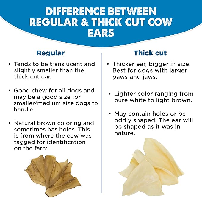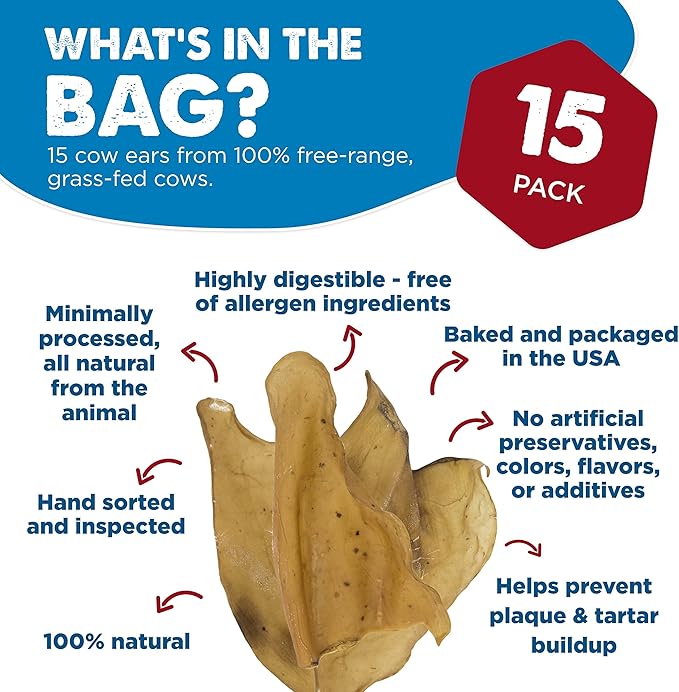 - DURABLE & LONG-LASTING: These cow ears ensure long-lasting entertainment for your dog. Perfect for aggressive chewers, these healthy dog treats help satisfy your dog’s natural chewing instinct while keeping boredom at bay and providing hours of enjoyment.