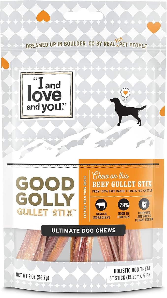 I and love and you Good Golly Gullet Stix - Beef - Rawhide Alternative, Single Ingredient, Free Range Grass Fed Beef, 6in, 5ct