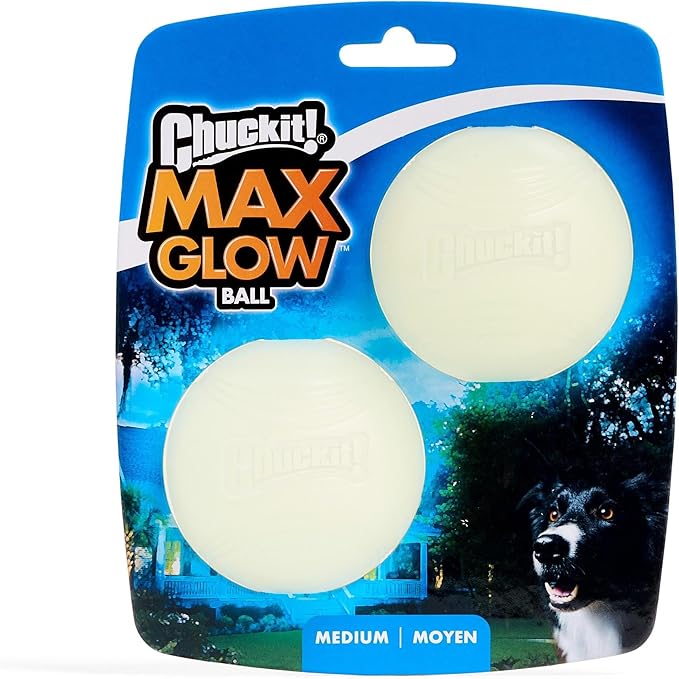 Chuckit! Max Glow Ball Dog Toy - Glows in the Dark - Made from Durable Rubber - Size Medium - For Dogs 20-60 lbs - 2.5-inch Diameter - Pack of 2