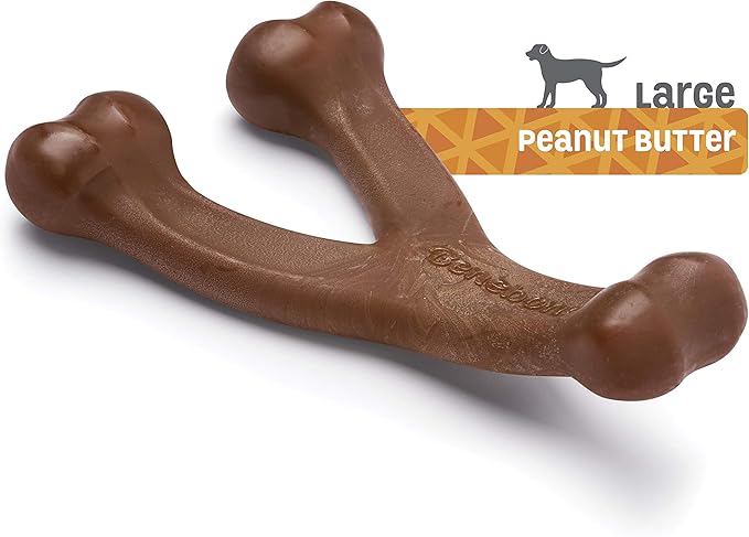 Benebone Wishbone Durable Dog Chew Toy for Aggressive Chewers, Real Peanut, Made in USA, Large
