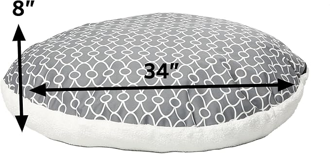 - Over-stuffed poly-fiber dog bed features Teflon Fabric Protector for long use. Dog pet bed measures 34 inches round x 8H", medium dog breed, gray