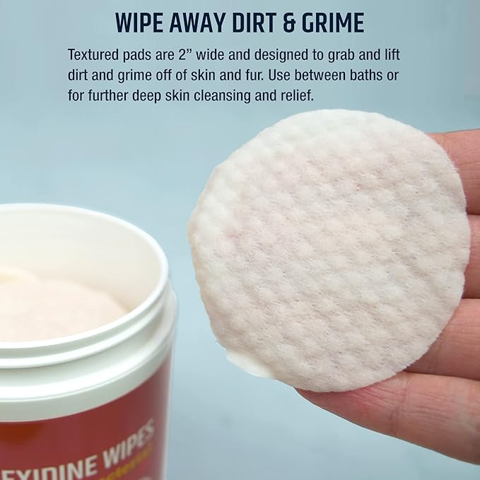 - Perfect Between Baths and Easier Than Shampoos and Liquids. Useful for the Cleansing of Face Folds, Finger Folds, as Well as Underarm and Groin. Also Helps to Dry the Affected Area.