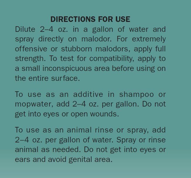 - Dilute for use as an animal rinse or spray, additive in shampoo, mop water and laundry