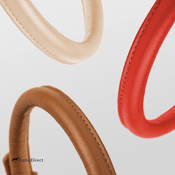 CollarDirect Rolled Leather Dog Collar, Soft Padded Round Puppy Collar, Handmade Genuine Leather Collar Dog Small Large Cat Collars 13 Colors (13-16 Inch, Red Textured)