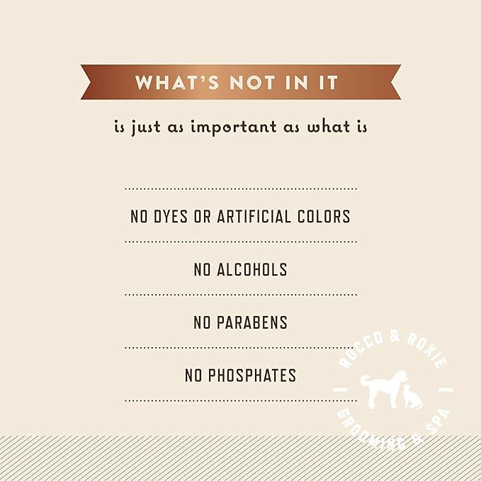 - Safe, Effective, Natural: No masking dyes; No drying alcohols; No parabens that can mess up a dog’s endocrine system; All of the good stuff, none of the bad: that’s what Rocco & Roxie is all about