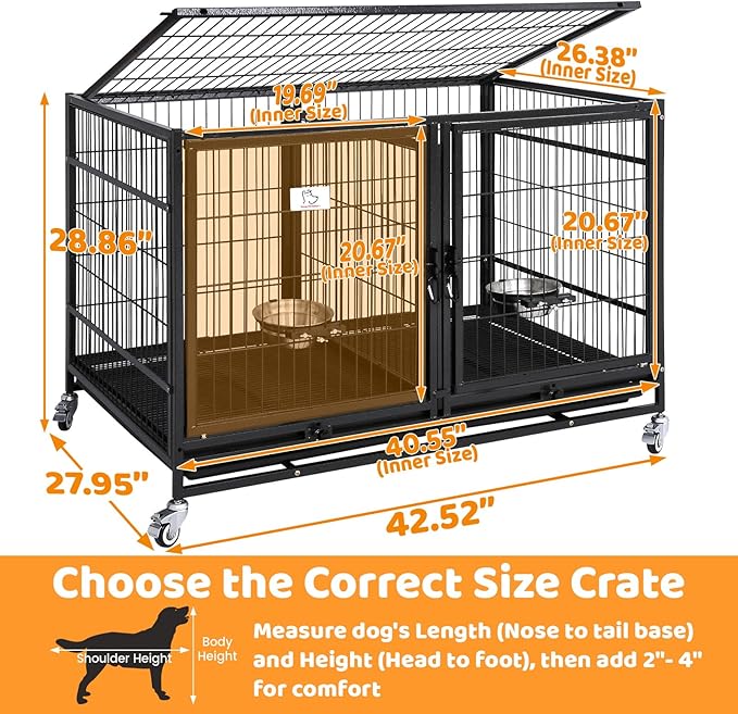 - ONE CAGE INCLUDED ONLY. Size: L 42.5" x W 28" x H 29"; Inside Height: 21??(ONLY SUITABLE FOR FRENCH BULLDOG OR PUPPY HEIGHT DOGS))”Side Bar spacing: 1.08"