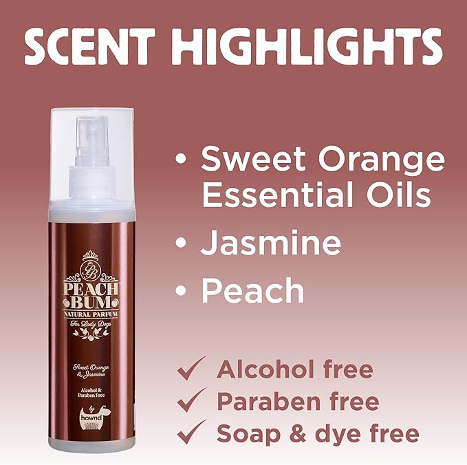 hownd Peach Bum Natural Parfume Mist Deodorizing & Detangling/Shine Spray For Dogs - Long Lasting, Sweet Orange & Jasmine, Freshen Up Between Baths - No Alcohol, Parabens, Soap or Dyes, 8.5oz